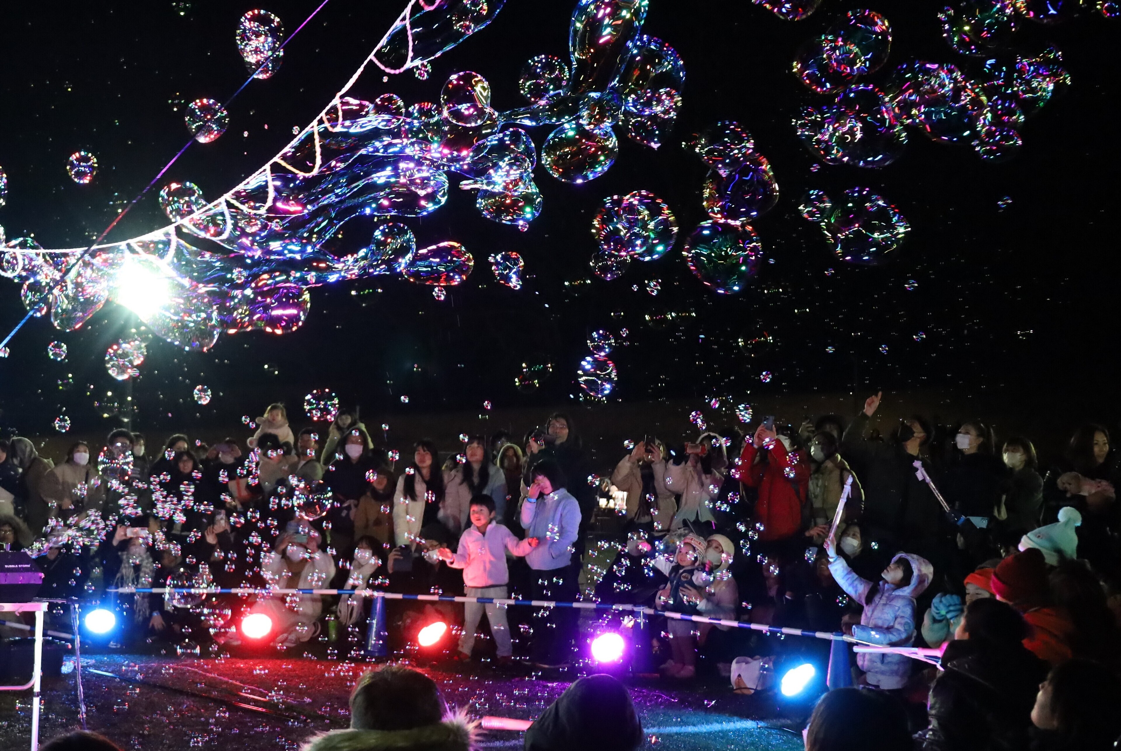 光のトンネルやハート形のゲート、動物など様々な飾りがあり、子どもたちは走り回っていました。イルミネーションは明るくても、子どもたちをすぐ見失ってしまい、追いかけるのにへとへとでした。