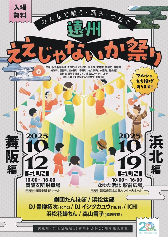 天竜川・浜名湖地域12市町村合併20周年記念事業 「みんなで歌う・踊る・つなぐ 遠州ええじゃないか祭り」 2025年10月19日 浜名区 マルシェ・フリマ なゆた浜北 駅前広場 浜名区 マルシェ・フリマ