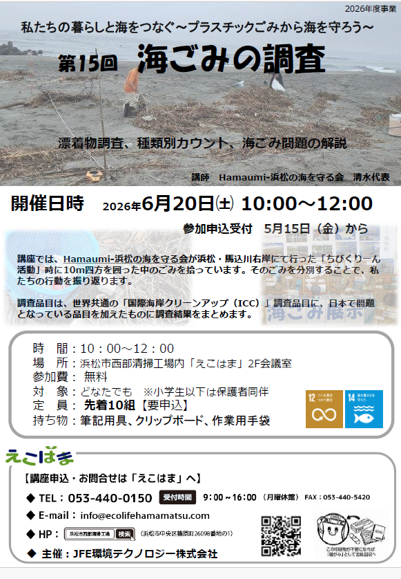 新着イベント プラネタリウム「天竜浜名湖鉄道星空紀行」 2025年12月26日 〜 2026年5月31日 中央区 体験・ワークショップ 浜松科学館 浜松科学館 中央区 体験・ワークショップ 浜松科学館 ワークショップ「バネの力でぶっ飛びロケット」 2026年4月21日 〜 2026年5月3日 中央区 体験・ワークショップ 浜松科学館 浜松科学館 中央区 体験・ワークショップ 浜松科学館 さわる!常設展示ツアー 2026年4月29日 〜 2026年5月3日 中央区 体験・ワークショップ 浜松科学館 浜松科学館 中央区 体験・ワークショップ 浜松科学館 さわる!サイエンスショー 2026年4月29日 〜 2026年5月3日 中央区 体験・ワークショップ 浜松科学館 浜松科学館 中央区 体験・ワークショップ 浜松科学館 プラネタリウム「星空マルシェ」 2026年4月1日 〜 2026年7月17日 中央区 体験・ワークショップ 浜松科学館 浜松科学館 中央区 体験・ワークショップ 浜松科学館 手織りでミサンガ作り 2026年6月21日 中央区 体験・ワークショップ 浜松市西部清掃工場・えこはま 浜松市西部清掃工場・えこはま 中央区 体験・ワークショップ 浜松市西部清掃工場・えこはま 事前申込み必要 海ごみ調査 2026年6月20日 中央区 体験・ワークショップ 浜松市西部清掃工場・えこはま 浜松市西部清掃工場・えこはま 中央区 体験・ワークショップ 浜松市西部清掃工場・えこはま 事前申込み必要 ミニ竹灯篭(たけとうろう)を作ろう 2026年5月23日 中央区 体験・ワークショップ 浜松市西部清掃工場・えこはま 浜松市西部清掃工場・えこはま 中央区 体験・ワークショップ 浜松市西部清掃工場・えこはま 事前申込み必要 生物多様性講座 「ヤゴ(トンボの幼虫)を育ててみよう」 2026年5月30日 中央区 体験・ワークショップ 浜松市西部清掃工場・えこはま 浜松市西部清掃工場・えこはま 中央区 体験・ワークショップ 浜松市西部清掃工場・えこはま 事前申込み必要 生物多様性講座 「田んぼの生きものと遊ぼう」 2026年5月30日 中央区 体験・ワークショップ 浜松市西部清掃工場・えこはま 浜松市西部清掃工場・えこはま 中央区 体験・ワークショップ 浜松市西部清掃工場・えこはま 事前申込み必要 介護のDVD視聴会 2026年6月11日 中央区 相談 浜松市福祉交流センター 中央区 相談 就職ガイダンス 2026年6月11日 中央区 相談 浜松市福祉交流センター 中央区 相談 福祉職場相談会 2026年6月11日 中央区 相談 浜松市福祉交流センター 中央区 相談 夏の花 植え付け体験 2026年6月14日 中央区 体験・ワークショップ 浜松こども館 浜松こども館 中央区 体験・ワークショップ 浜松こども館 我が子を可愛く撮る撮影教室 2026年6月28日 中央区 体験・ワークショップ はままつフラワーパーク はままつフラワーパーク 中央区 体験・ワークショップ はままつフラワーパーク もっと見る RSS