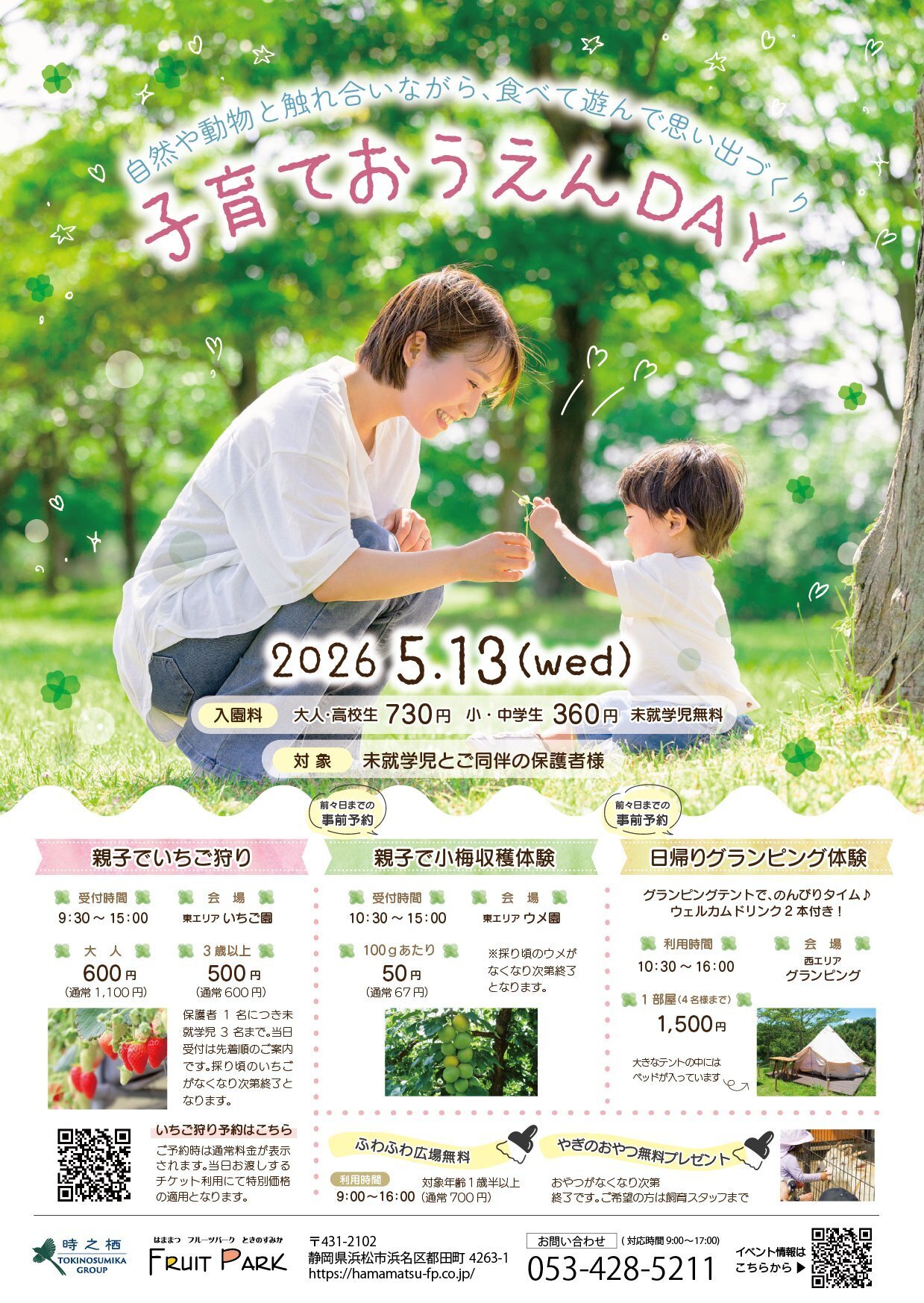 施設 子どもと行ける公共施設 浜松こども館 浜松科学館 浜松市動物園 浜松市博物館 浜松市美術館 浜松市天文台 浜松まつり会館 はままつフラワーパーク 浜名湖ガーデンパーク フルーツパーク時之栖 浜名湖体験学習施設ウォット 浜松市防災学習センター 浜松市西部清掃工場・えこはま 浜松市立青少年の家 浜松市かわな野外活動センター 静岡県立森林公園 浜松市鴨江アートセンター アクトシティ浜松 浜松市子育て情報センター 遠州灘海浜公園(石人の星公園ほか) 浜松城公園 ふれあい交流センター 図書館 浜松市立中央図書館 浜松市立城北図書館 浜松市立南図書館 浜松市立西図書館 浜松市立北図書館 浜松市立積志図書館 浜松市立東図書館 浜松市立流通元町図書館 浜松市立はまゆう図書館 浜松市立舞阪図書館 浜松市立雄踏図書館 浜松市立南陽図書館 浜松市立可新図書館 浜松市立都田図書館 浜松市立細江図書館 浜松市立引佐図書館 浜松市立三ヶ日図書館 浜松市立浜北図書館 浜松市立天竜図書館 浜松市立春野図書館 浜松市立佐久間図書館 浜松市立水窪図書館 浜松市立龍山図書館 子育て支援ひろば ここみ広場 カンガルーのおうち Luana(るあな) わわわひろば さわさわひろば まんまのつぼみ ぞうさん きらり どんぐりひろば グリーンランド ささっこひろば さなるのひろば やまぼうしの家 マイひろば ころころルーム サンサンひろば ここみのおうち なごみCIRCUS(サーカス) おひさま 引佐子育て支援広場 そよかぜ ゆりかご ここみの森 ねむのき やまびこ 中山間地域親子ひろば