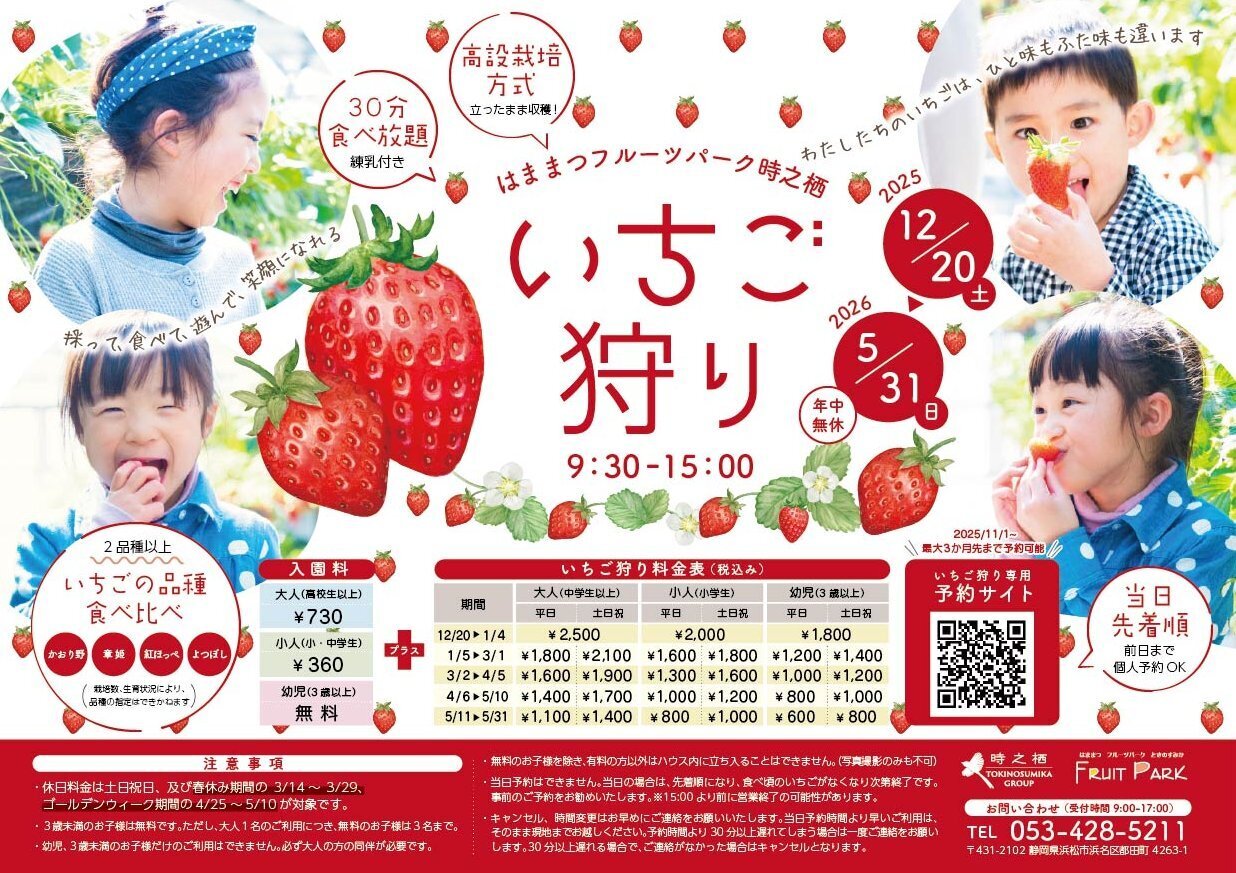 | 問い合わせ先 | フルーツパーク時之栖 (053)428-5211 |