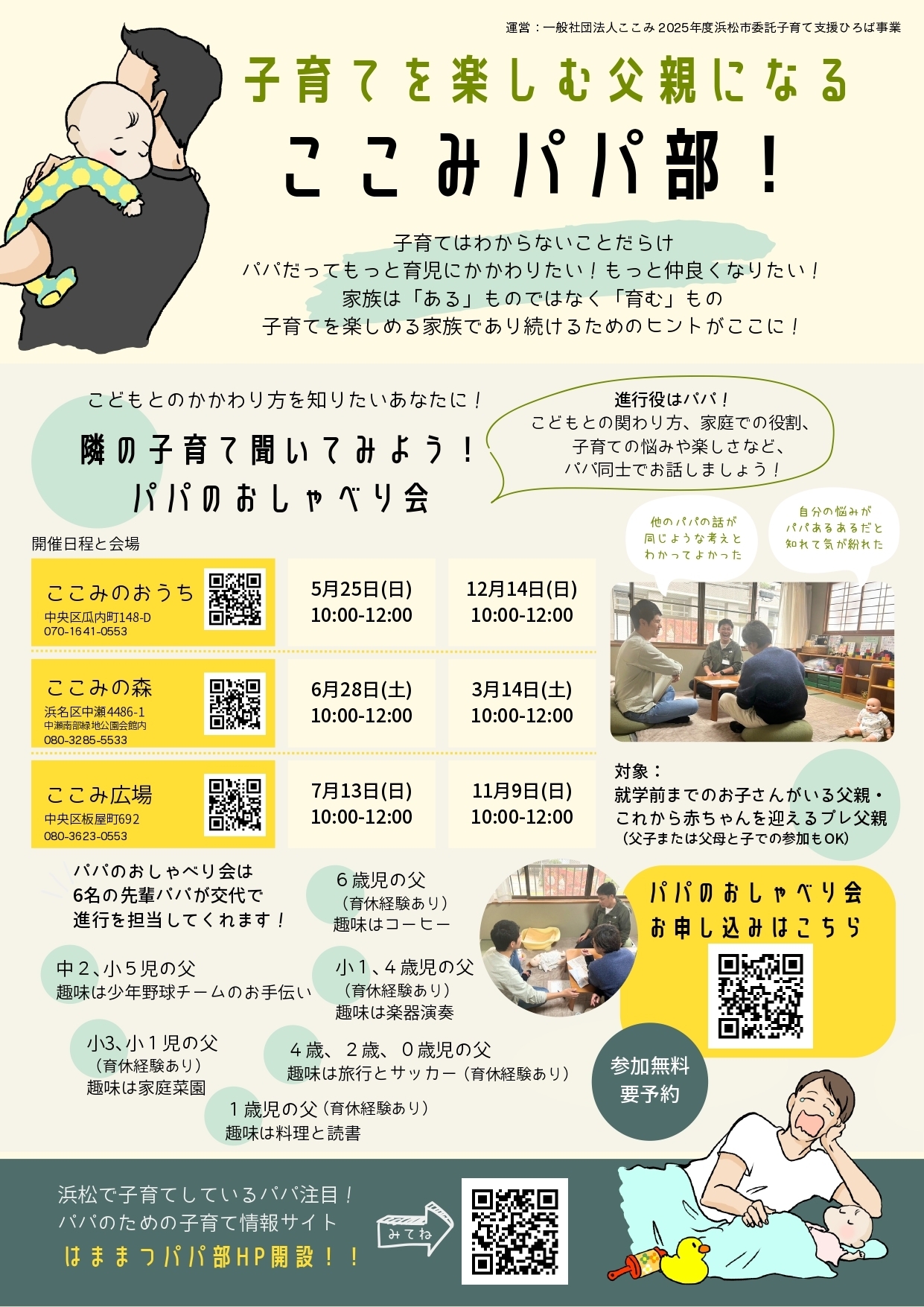 ここみパパ部パパのおしゃべり会〜隣の子育て聞いてみよう!〜 2025年12月14日 中央区 体験・ワークショップ ここみのおうち ここみのおうち 中央区 体験・ワークショップ ここみのおうち 事前申込み必要