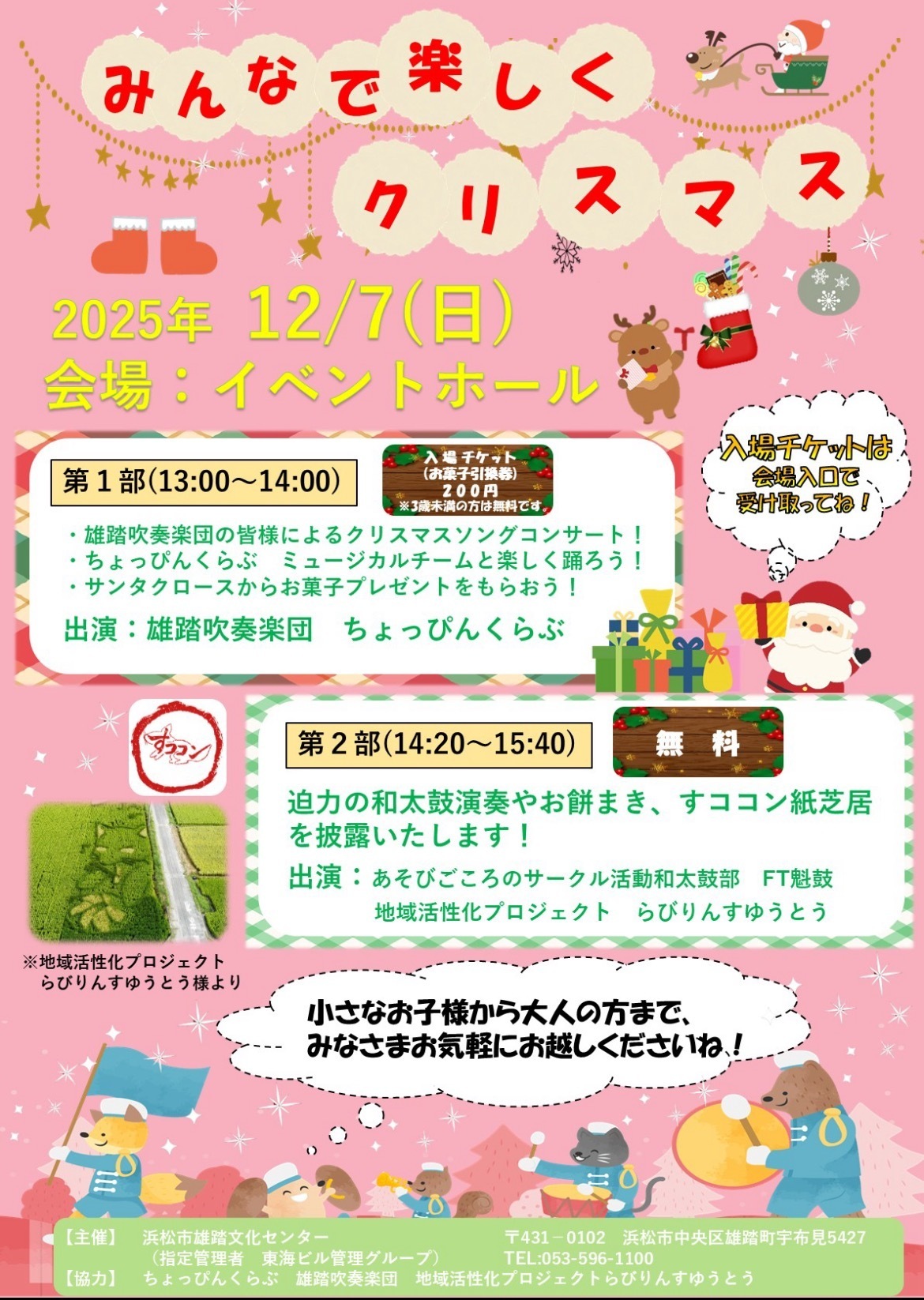 施設 子どもと行ける公共施設 浜松こども館 浜松科学館 浜松市動物園 浜松市博物館 浜松市美術館 浜松市天文台 浜松市楽器博物館 はままつフラワーパーク 浜名湖ガーデンパーク フルーツパーク時之栖 浜名湖体験学習施設ウォット 浜松市防災学習センター 浜松市立青少年の家 浜松市かわな野外活動センター 静岡県立森林公園 航空自衛隊浜松広報館エアパーク 浜松市鴨江アートセンター アクトシティ浜松 浜松市子育て情報センター 遠州灘海浜公園(石人の星公園ほか) 浜松城公園 ふれあい交流センター 図書館 浜松市立中央図書館 浜松市立城北図書館 浜松市立南図書館 浜松市立西図書館 浜松市立北図書館 浜松市立積志図書館 浜松市立東図書館 浜松市立流通元町図書館 浜松市立はまゆう図書館 浜松市立舞阪図書館 浜松市立雄踏図書館 浜松市立南陽図書館 浜松市立可新図書館 浜松市立都田図書館 浜松市立細江図書館 浜松市立引佐図書館 浜松市立三ヶ日図書館 浜松市立浜北図書館 浜松市立天竜図書館 浜松市立春野図書館 浜松市立佐久間図書館 浜松市立水窪図書館 浜松市立龍山図書館 子育て支援ひろば ここみ広場 カンガルーのおうち Luana(るあな) わわわひろば さわさわひろば まんまのつぼみ ぞうさん きらり どんぐりひろば グリーンランド ささっこひろば さなるのひろば やまぼうしの家 マイひろば ころころルーム サンサンひろば ここみのおうち なごみCIRCUS(サーカス) おひさま 引佐子育て支援広場 そよかぜ ゆりかご ここみの森 ねむのき やまびこ 中山間地域親子ひろば
