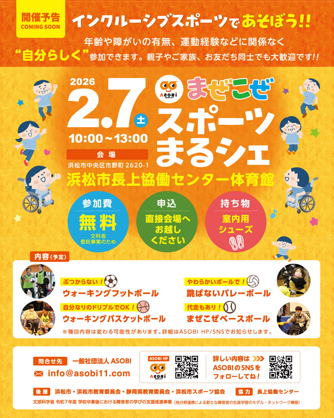ふれあい交流センター萩原 1階大広間(調理室)、トランポリンパーク浜松、トヨタユナイテッド静岡 浜松宮竹店2階コミュニティスペース